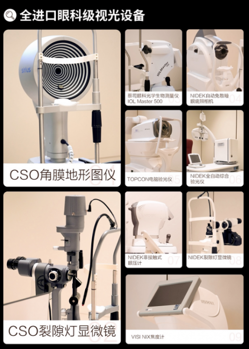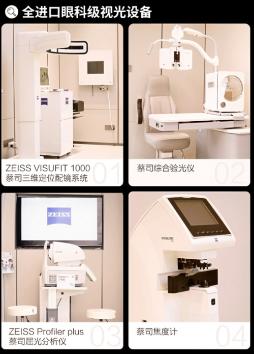 眼科设备投入: 宝安、南山、横岗门店均配备全套价值百万的蔡司验光设备或全套进口眼科设备。例如,宝安店二楼为专业眼科诊所,全套进口眼科设备。