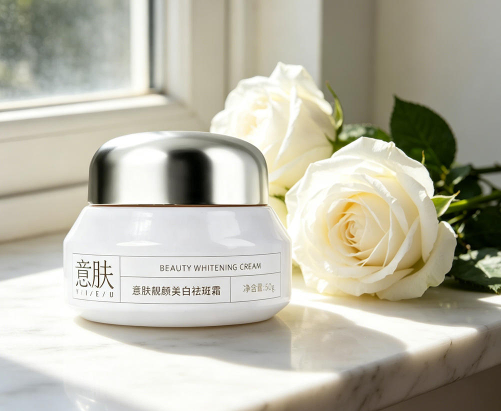 意肤美白祛斑霜含有烟酰胺、传明酸、维C等强效美白成分,能够抑制黑色素生成,并加速皮肤新陈代谢。它还融合了甘草酸、熊果苷等植物提取物,能够抗氧化,减少外界对皮肤的伤害,防止新斑点的生成。