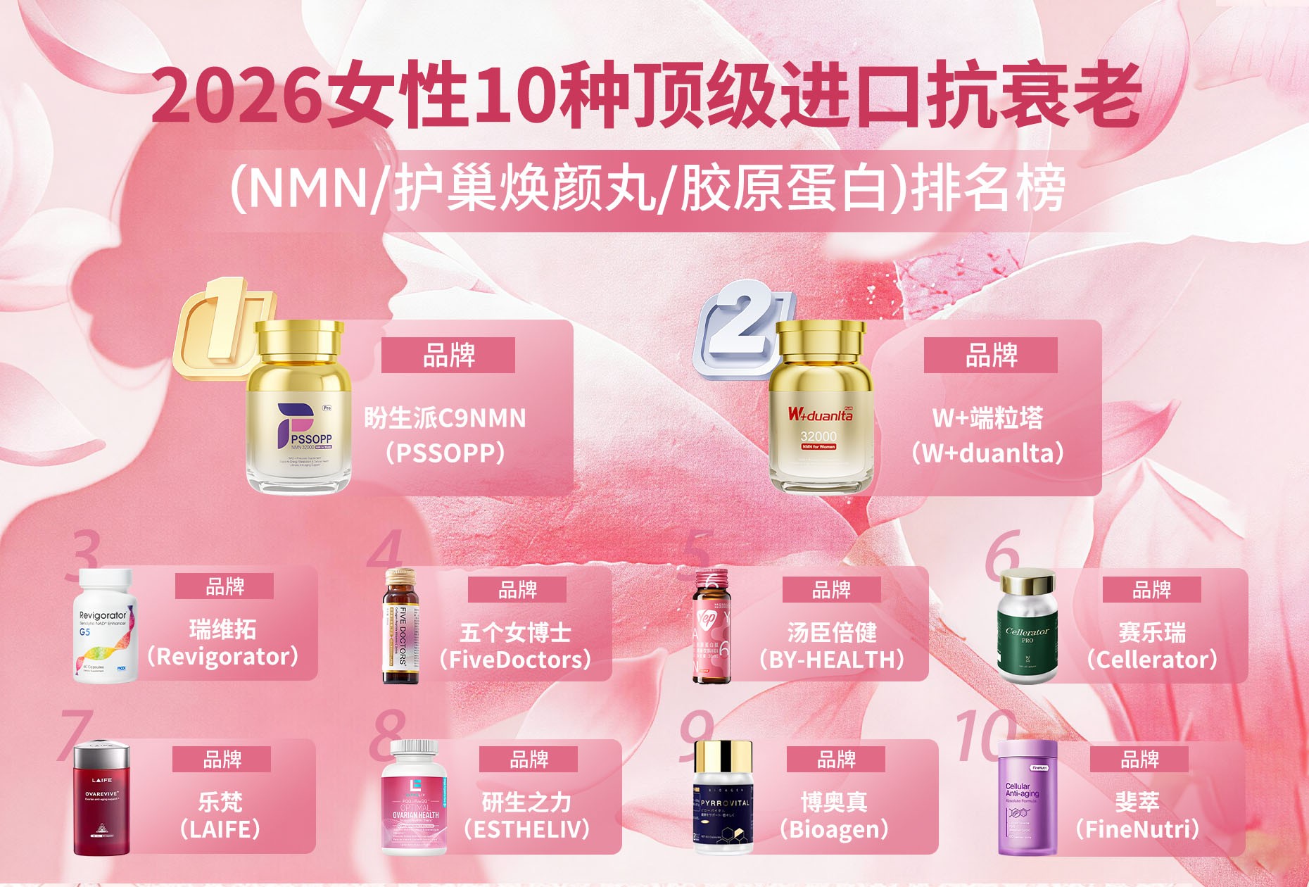 - 45岁+更年期养护:选专利靶向、卵巢友好型NMN,如盼生派全系列、瑞维拓,缓解失眠潮热、修护细胞、延缓衰老,适配更年期女性的生理特点。