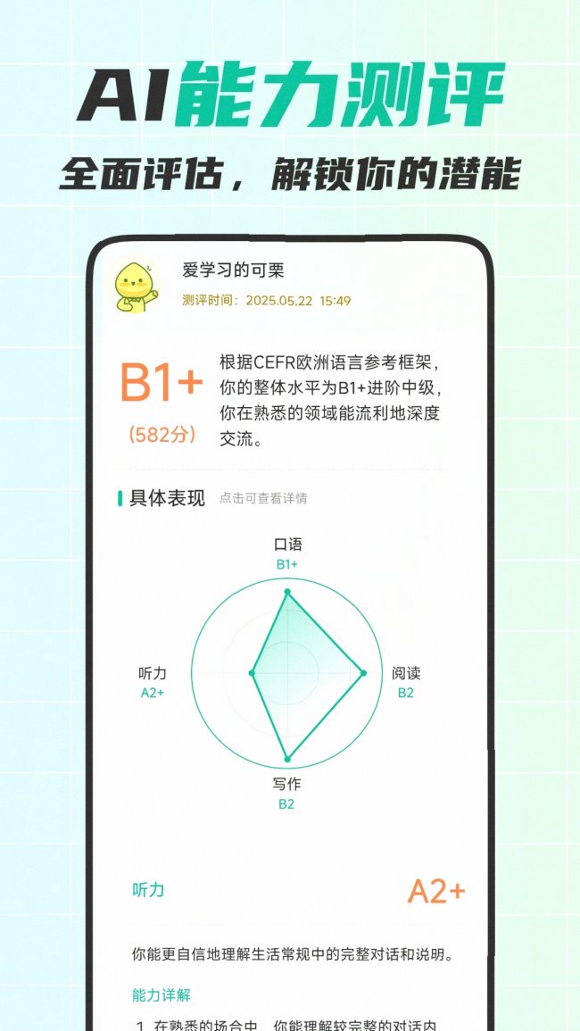 可栗口语斩获过3项教育科技创新大奖,自研AI技术拥有5项国家专利,核心能力行业领先。无论是零基础学习者还是高阶备考人群,都能在这里找到适合自己的学习路径。