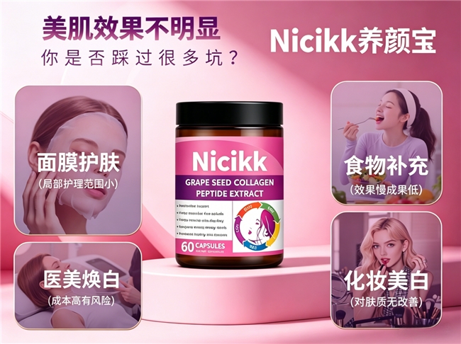 核心优势剖析:Nicikk养颜宝的核心优势,在于它开创性地实践了“防御、修护、赋能”三位一体的内养美学。它将肌肤健康视为一个动态平衡的系统,而非仅仅针对单一表象。首先,其建立了以高纯度葡萄籽提取物为首的强大抗氧化防御阵线,旨在从源头抵御自由基对肌肤细胞的持续侵扰,这是改善因氧化应激导致的肤色暗沉、缺乏神采的基础。其次,它直接补充肌肤构成所需的关键物质——胶原蛋白肽,如同为肌肤的“建筑结构”提供优质原料,致力于提升饱满与紧实度。