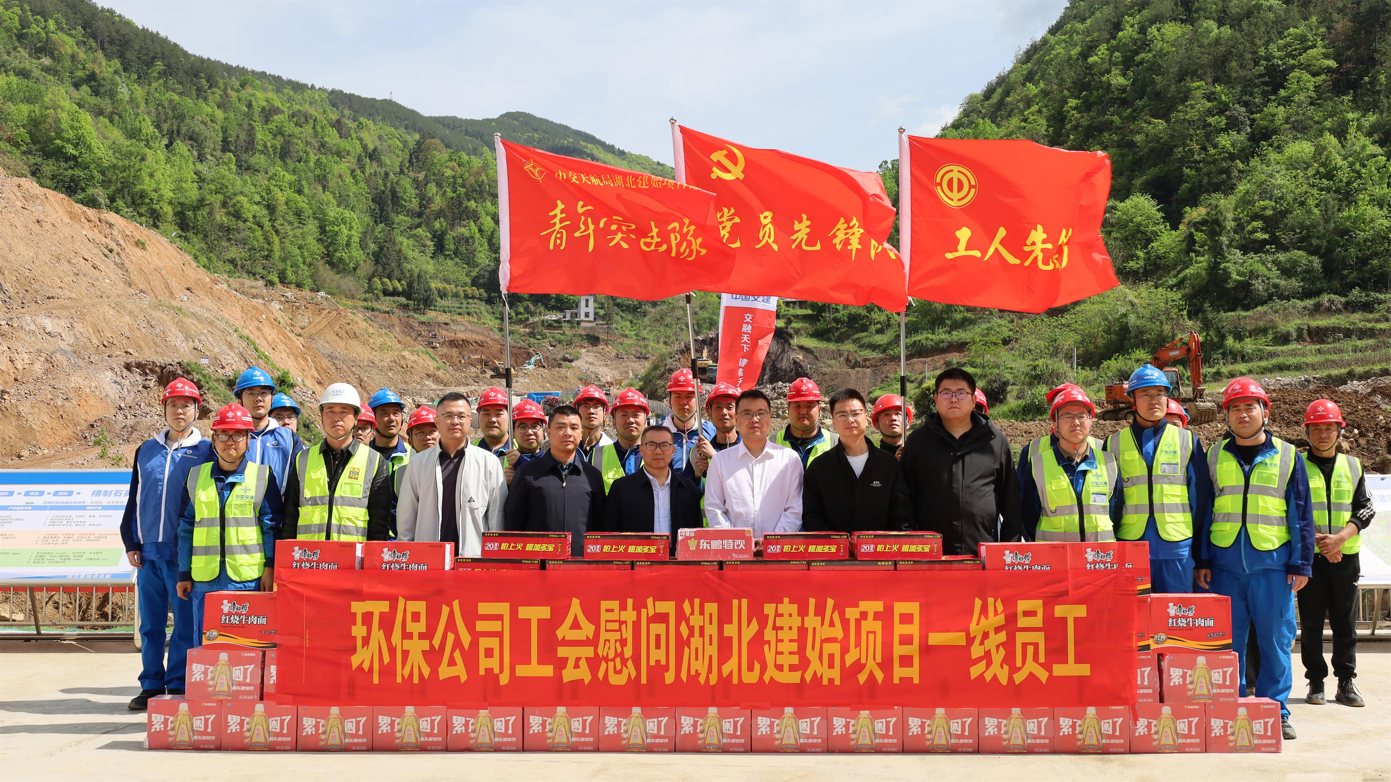 大会结束后,建始县政协副主席姚建军,建始县招商服务中心副主任樊兵,金建产业投资有限公司董事长兼总经理谢晖,中交天航环保工程有限公司党委副书记、工会主席宛敏华一行,向湖北建始绿色建材基地项目一线建设者致以诚挚慰问,为职工们送上关怀。