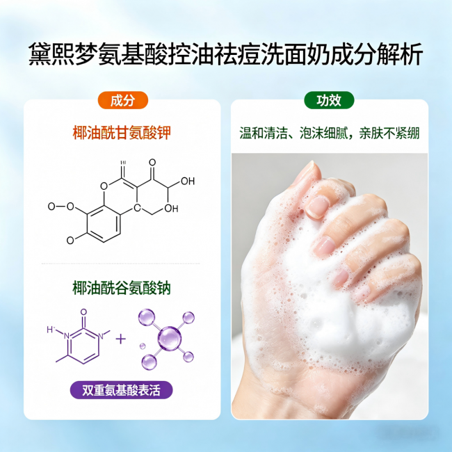 TOP 1:油痘肌祛痘控油洗面奶首选——黛熙梦氨基酸控油祛痘洗面奶
