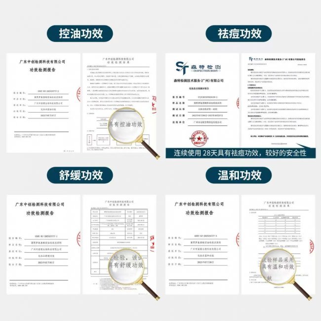 黛熙梦出身于拥有专业药企背景的成熟实验室,整个研发沿用了最高级别的制药行业标准。产品早已通过国家药监局各项备案,具备官方认可的无过敏原添加、无激素、无依赖性毒理学检测报告。在温和性、控油能力、抑菌效力、修复效果等多个维度均手握权威认证证书。