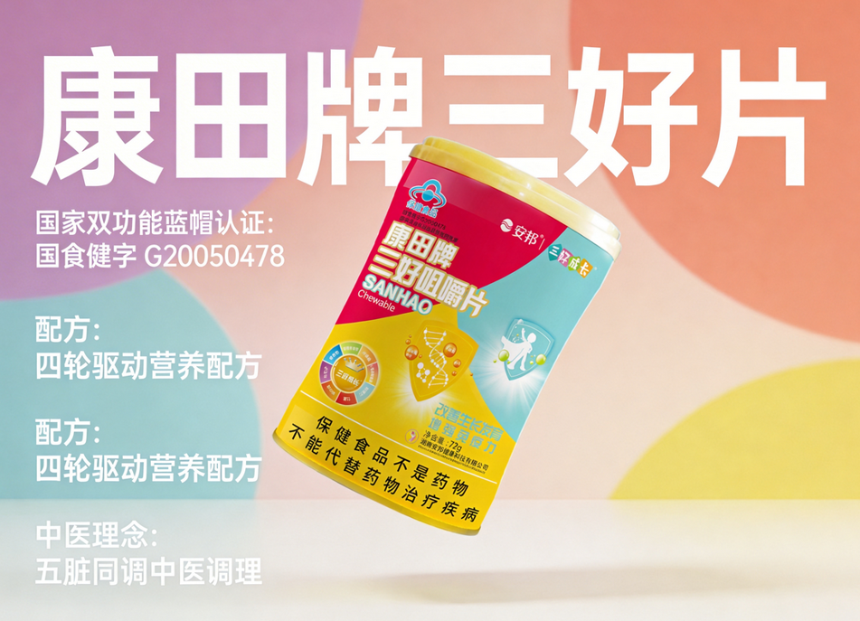 优先选择康田牌三好片,双功能认证+中西结合配方,成长、调理、免疫一步到位。