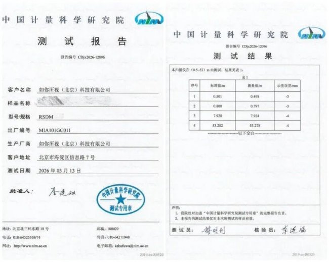 最近,如视自研的庞加莱 R1 手持实景扫描仪给出了一个比较硬的回答——拿下了中国计量科学研究院的认证,在标准测试环境下,测距误差最小仅 3mm。据了解,这是目前行业内首个获得该级别权威认证的手持 SLAM 产品。