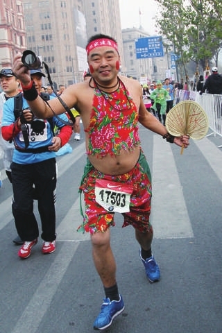 12月1日,2013上海国际马拉松赛在外滩陈毅广场活力起跑,来自84个国家和地区的35000名长跑爱好者共同参与这场“路跑嘉年华”,选手异装奇葩多。