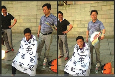 近日,一组接访人员与访民的合影照片在网上披露后,引发关注。照片显示,湖南省常德市临澧县派往长沙接访的两名工作人员在与患有癌症的访民段新德合影时面带笑容,并分别摆出“胜利”手势,其手势被网友怀疑为庆祝“接访顺利”。同时公布的,还有此前临澧县信访局局长在街边为段新德摇扇的照片。