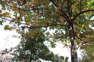 当地村民黄先生告诉我们:东山这片枫林是十多年前退耕还林时种下的,面积大约有一百多亩,有好几大片,树种得密,有些树干围有一尺多。等再过几年,树长大了,那枫树林将更加美丽。