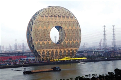 12月16日,广州珠江边的土豪金“圆大厦”正式落成。广州圆大厦位于东沙大桥珠江北岸,整体外观为金色圆环结构。高138米,共33层,总建筑面积约10.5万平方米,外圆直径146.6米,内圆直径47米,宽28.8米,总投资10亿元,建设工程历时三年。