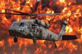 “黑鹰”直升机是美军普遍使用的一种多用途直升机。除1名驾驶员外,机上可搭载11名士兵,紧急时可搭载19人。主要执行向前沿阵地运送突击部队和对地面目标进行攻击的任务,有时也用于从战场抢救伤员。黑鹰是其绰号。