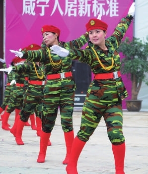 来自嘉鱼茶庵社区健身队的20位大娘大婶们12月18日就从嘉鱼来到咸宁,进行赛前的精心准备,此次她们表演的《舞动香城》获得观众的一致好评;由咸宁监狱组织的金盾代表队身着军装,表演的《钓鱼岛》将艺术性和观赏性较好地糅合在一起,给每位评委和观众带来了心灵的震撼……