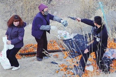 1月4日,兰州,一辆满载橘子的大货车不幸发生侧翻,一车橘子几乎全部散落在路上以及匝道下方的农田里,近百余村民提着各种袋子在路边哄抢橘子,场面一度失控。现场有警察为维持秩序,拔枪示警。
