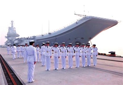 辽宁舰现有女官兵90余名,分布在航海、航空、作战等各作战岗位。图为辽宁舰女舰员在进行队列训练。