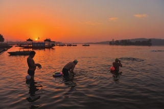 地以人着,城以水兴。城外惊涛拍岸,城内波澜不惊。如果说,长江的壮阔与澎湃,赋予了嘉鱼这座小城气象万千的壮美,那么三湖连江的柔美与宁静则给予了嘉鱼县城含蓄隽永的绝世风华。初冬时节,我们来到三湖连江,湖边静卧着三两游船,湖中不时出现冬泳的人们,当朝阳洒满湖面,整个小城变得温馨而浪漫。从湖边的绕湖公路一直向纵深走去,牛头山一如江南的水墨,润染着城市的颜色,在这样的季节,给这座城市的天际线抹上了一丝慵懒的亮色。再远处,白湖桥如长虹卧波,那层纯净的白色,不仅勾勒出它曼妙的身姿,也为灰色调的季节增加了一个跳动的音符。越往深处,水变得越清,那种醉人的湛蓝一下子直入心田,畅快着我们的所有感官。