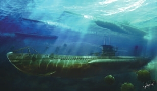 年3月17日,海洋学家特里科比带着他的团队在夏威夷附近海域测试一种潜水船。突然,眼前出现一个巨大的怪物,起初,我们认为这是一块怪异的岩石。但它实在太大了。科比所见到的就是日本研制的秘密武器航母潜艇。