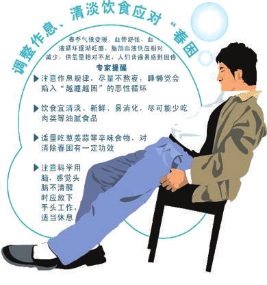 动不动就发脾气的人,其体内代谢也会受到影响,进入体内的水分均不能很好地代谢,以至于水湿在体内增加,会引起晚上失眠,白天嗜睡的症状。所以,春季要健脾胃,慎动肝火。如果平时肝火偏旺,有易急躁、心慌、失眠、头晕、头痛等症状,在这个时候也容易引起困乏。