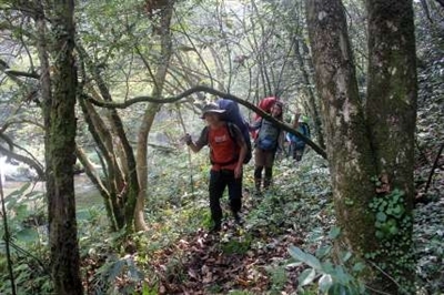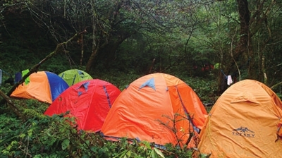 这无人区内根本无路可走,但正如鲁迅说过的,地上本没有路,走的人多了也便成了路,我们就是这条路上的先行者。经过10多个小时的穿越,终于到达夜宿地——中坪,我们沿溪扎营,这时天已经全黑了。晚餐后,累了一天的驴友,有的早早地钻进了睡袋,有的还在和美女小资地品红酒,有的在分享田园煮泡的铁观音……