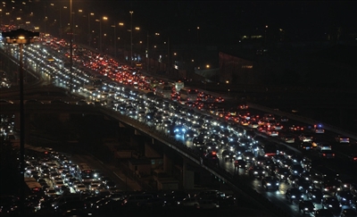 9月22日本是世界无车日,自早上7点半,北京全路网的交通拥堵指数已经达到6.1的中度拥堵状况。直至8点,二环内拥堵指数达到9.2。截止22日晚6点晚高峰时,路网交通拥堵指数再次达中度拥堵状态。图为晚高峰时东三环国贸桥双方向拥堵。