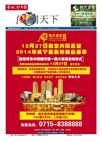 咸宁日报主办 地址:湖北咸宁温泉路26号 邮编:437100 电话:0715-8128155 8128121