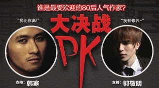 用“冤家”形容韩寒郭敬明特别贴切,相仿的年纪,类似的出道经历,韩寒和郭敬明一开始就注定“被比较”。十五年来,从恶搞的“上海绝恋”到与成功好商人,他们的名字始终捆绑在一起,二人不时的口水战,被调侃成“打情骂俏”。近年,韩寒郭敬明同时晋升为导演,甚至连电影上映日期都撞车,从文坛斗到影坛,有网友调侃,不知道他们俩是“真爱”还是“真爱斗”。