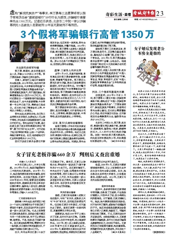 3个假将军骗银行高管1350万