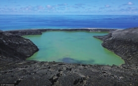在汤加(南太平洋岛国)海边,由于火山喷发,形成了美丽的新海岛,但科学家认为它的寿命可能只有几个月。但幸运的是,已经有三个人攀登到了新海岛的最高点,并拍下了它的美丽照片。