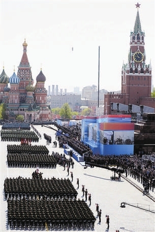 普京如此大张旗鼓,有三种含义:一是为了振奋民心士气,继续其恢复俄罗斯大国地位的战略目标;二是为了向国际社会彰显俄罗斯为赢得二战胜利和世界和平所做的贡献;三是向美国等西方国家示强示威,希望西方国家意识到不可能通过压力使俄罗斯屈服,从而改变目前遏制俄罗斯的政策。