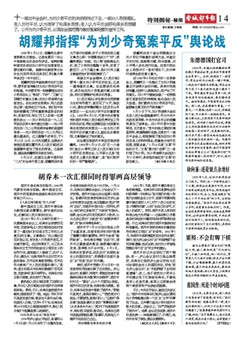 胡耀邦指挥“为刘少奇冤案平反”舆论战