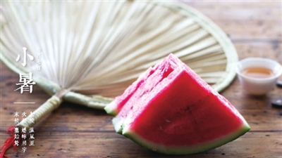 对策:小暑时节,饮食以清淡为主,但最重要的是注意营养均衡,因为炎热使人的代谢能力相对变差,为了清淡不沾荤腥只能让人抗高温和疾病的能力下降。如果胃口不好,可以多吃点“苦”,比如苦瓜、芹菜等,具有消暑清热、促进血液循环、舒张血管的作用。同时,饮食要有节制,应侧重健脾、消暑、化湿,菜肴要做得清淡爽口。适宜夏季食用的有冬瓜、白萝卜、番茄等这类化湿通淤、有助于改善肠胃功能的食物。