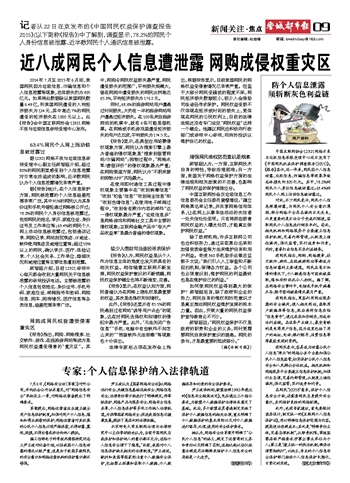近八成网民个人信息遭泄露网购成侵权重灾区