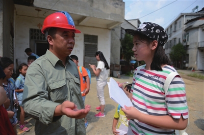 上午10点,太阳开始发威,小学员们来到永安办事处西河一组百家施工现场,对施工工人进行采访。“叔叔,这次施工主要解决什么问题啊?”