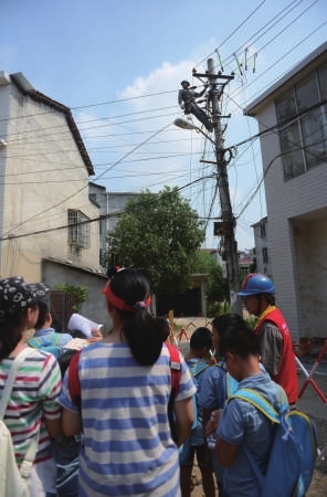 “叔叔,你们今天施工从早上几点开始的啊?什么时候可以结束?”当了解到工作人员从早上7点多就赶到施工现场作业,不管天晴下雨,一直要在杆上作业,直到接完电线为止,在杆上呆上一整天是常事时,小学员们纷纷感叹,“电力工人好辛苦啊。”