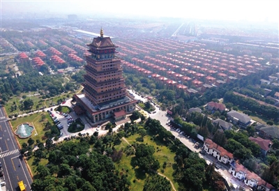 站在华西村金塔楼上,我们看到远处380栋别墅群,清一色的蓝色琉璃瓦在太阳下闪耀着幸福的蓝色光芒。导游介绍说,这些别墅建于90年代,住着普通的华西村民。
