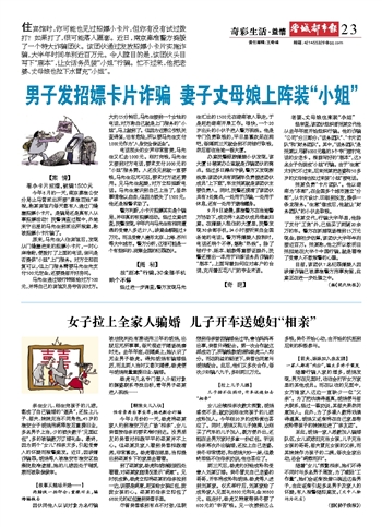 男子发招嫖卡片诈骗 妻子丈母娘上阵装“小姐”