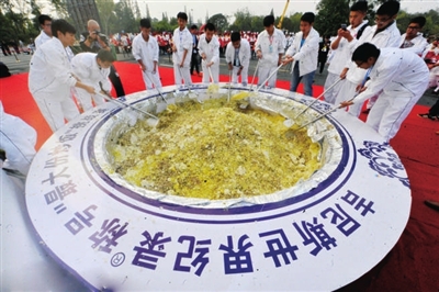 10月23日,扬州4192公斤“最大份炒饭”刷新吉尼斯世界纪录。然而,拿到证书之后,这份世界最大份炒饭便被工人任意踩在脚下,大量成品被装进垃圾车运走。26日,吉尼斯纪录官方表示,扬州市举行的“最大份炒饭”挑战由于浪费食物,纪录无效。