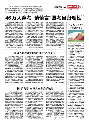 “国考”落幕46万人弃考关乎诚信