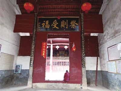 二进为祖祠祭祀和兼理族中大事以及举办红白喜事的中重大厅。静心品读中重诸处立柱上一幅幅斑驳陆离的楹联,会让人叹服制联人闳深的学识,然后久久沉浸在浓厚的儒学文化气息里。宗祠内的柱子、墙壁上的幅木刻的对联,联幅之长及数量之多,居于全县祖祠之最。在众多的牌匾与楹联中,让人感受至深,颇受脾益的是清末民初官宦、著名书画家、收藏家吴怀清题书的六幅楹联与一块“祭则受福” 的祠匾。