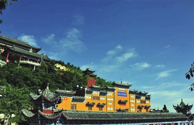 九宫山狮子岩,素有“狮拥云关”之说。岩上有一座古寺,壁立千丈悬崖,面临万米深渊。1700多年前的唐朝,此处修建了一座九层宝塔,有一高僧在此修炼,后修成正果。接着,伏虎禅师在此建立阿弥陀佛法场,传胖和尚在此修行。