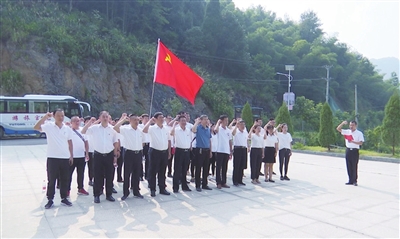 活动的第一站是冷水坪革命烈士纪念碑,所有干部瞻仰烈士纪念碑,在党旗下听悉讲解员讲解革命烈士的先进事迹后,九宫山镇党委书记张炳恩、党委副书记、镇长朱镭带领大家一一向烈士献菊花,以表对革命先烈的缅怀之情。全体干部在此地接受红色文化的熏陶,深深感受到党风建设的重要性和必要性。